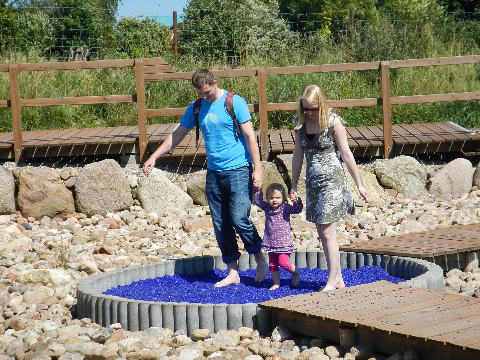 Ausgelassenes Platschen durch Moor oder nassen Torf und kurz darauf behutsames Tasten über Glasscherben – auf dem 2,5 ha großen Gelände sind Abwechslung und Spaß garantiert!