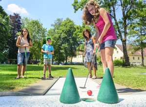 In der miniGOLF-Anlage können 18 Bahnen auf einem tollen Gelände bespielt werden. Groß und Klein können hier ihr miniGOLF-Geschick beweisen.